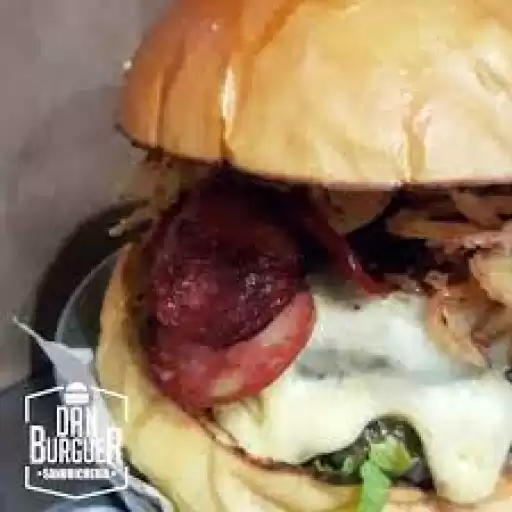 Hambúrguer, queijo mussarela, ovo, calabresa fatiada, salada, molho da casa.