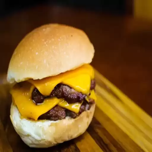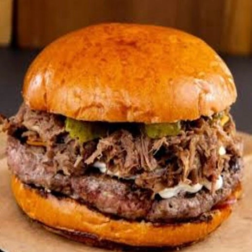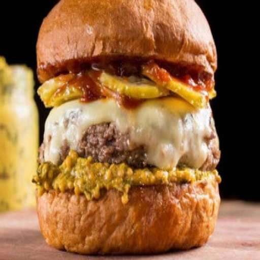 2 Hamburgueres, 2 fatias cheddar , bacon , salada e molho barbecue