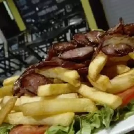 2 Hambúrguer artesanal de 150g, queijo mussarela, bacon, cebola crocante, calabresa, doritos, molho barbecue ou molho d... Ver completo
